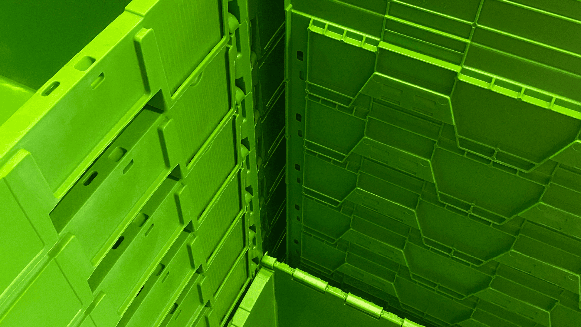 15% increase in vehicle fill compared to cardboard. Containers can be stacked and then nested on the way back.