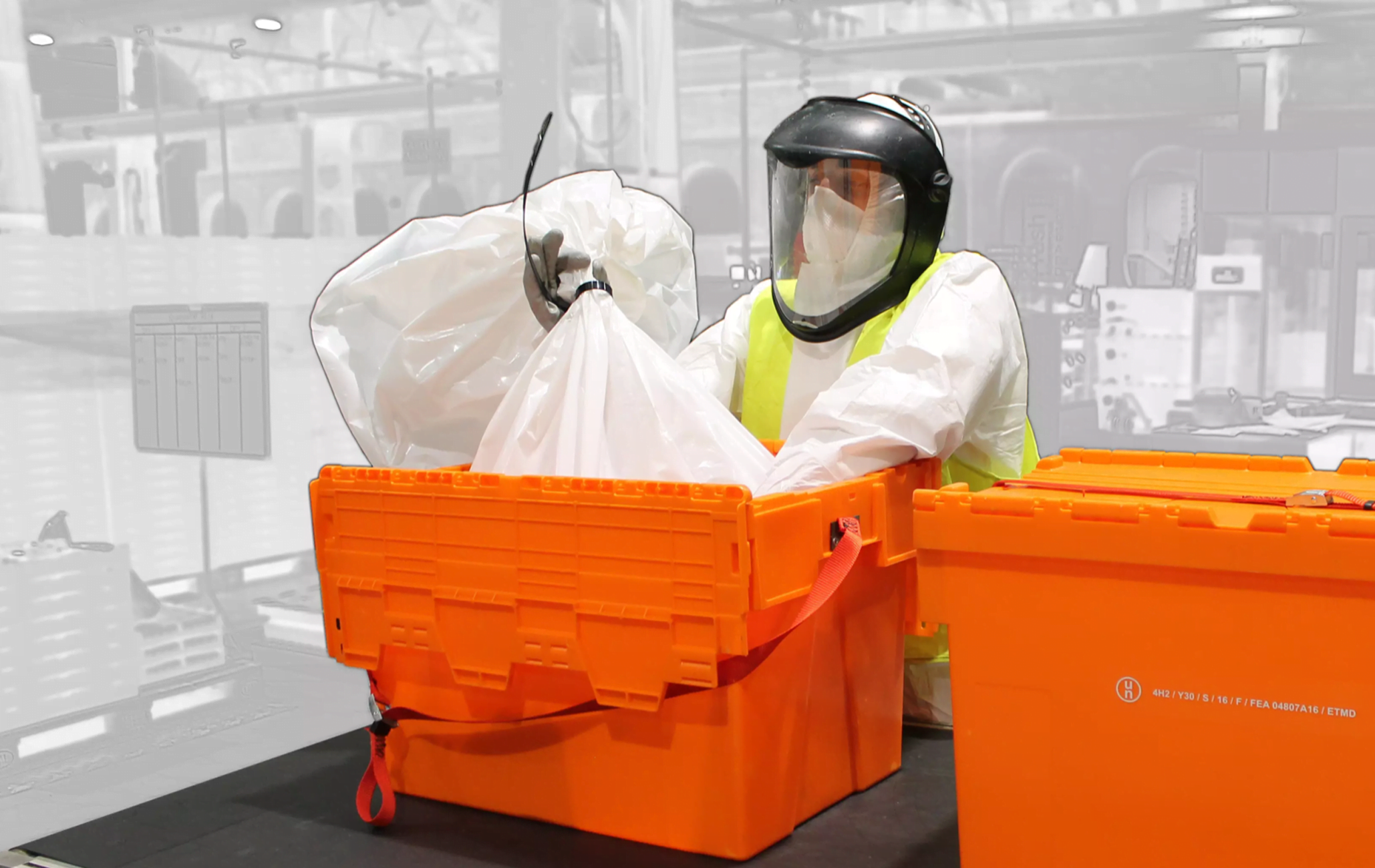 Each UN Certified Container must be used in conjunction with a bag (minimum 90 microns) and a security seal according to the UN certification requirements.