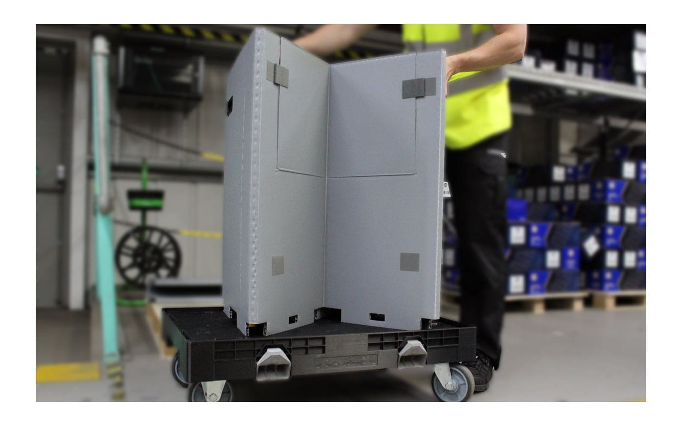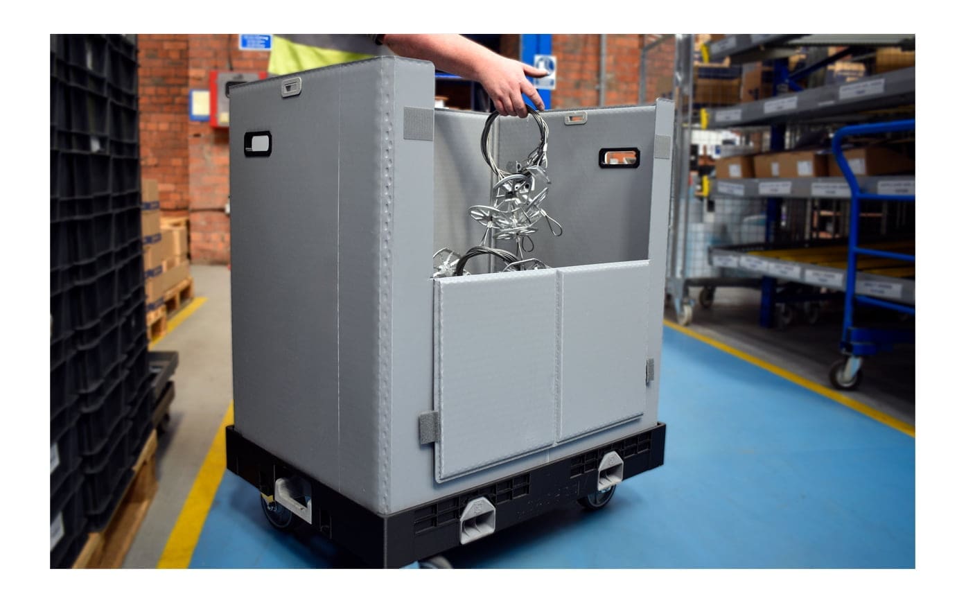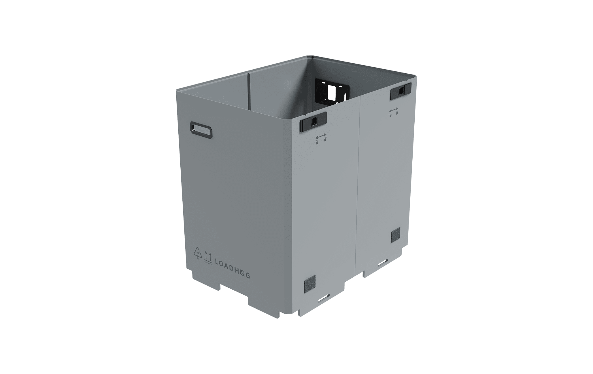 The Sleeves operate with Loadhog Dollies to provide easy and efficient transport of loose/bulk goods. Designed for efficient deconstruction and returns, the sleeve is fixed to the dolly by two foot-operated lock mechanisms.