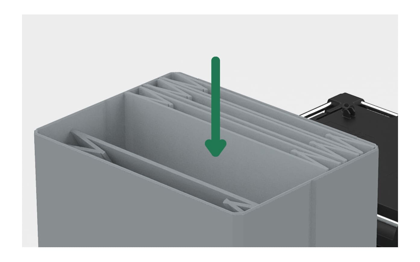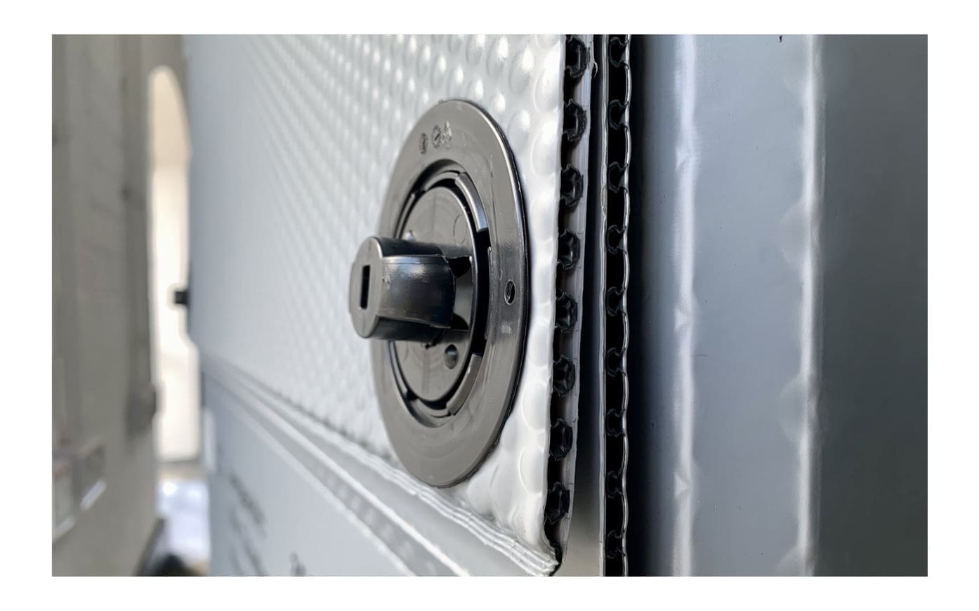 The drop down door can be opened and efficiently secured with velcro for easier placement of heavy goods at lower heights.