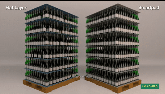 The Loadhog Smartpad is a unique, wave-edge, injection moulded solid Layer Pad that enables stable packing and transportation of glass bottles.